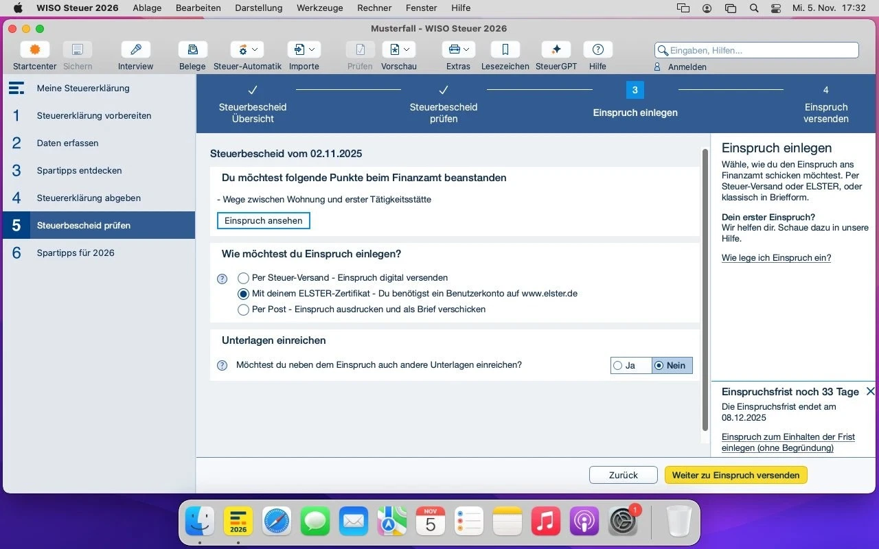 - ✔ Direkte ELSTER-Übermittlung an das Finanzamt