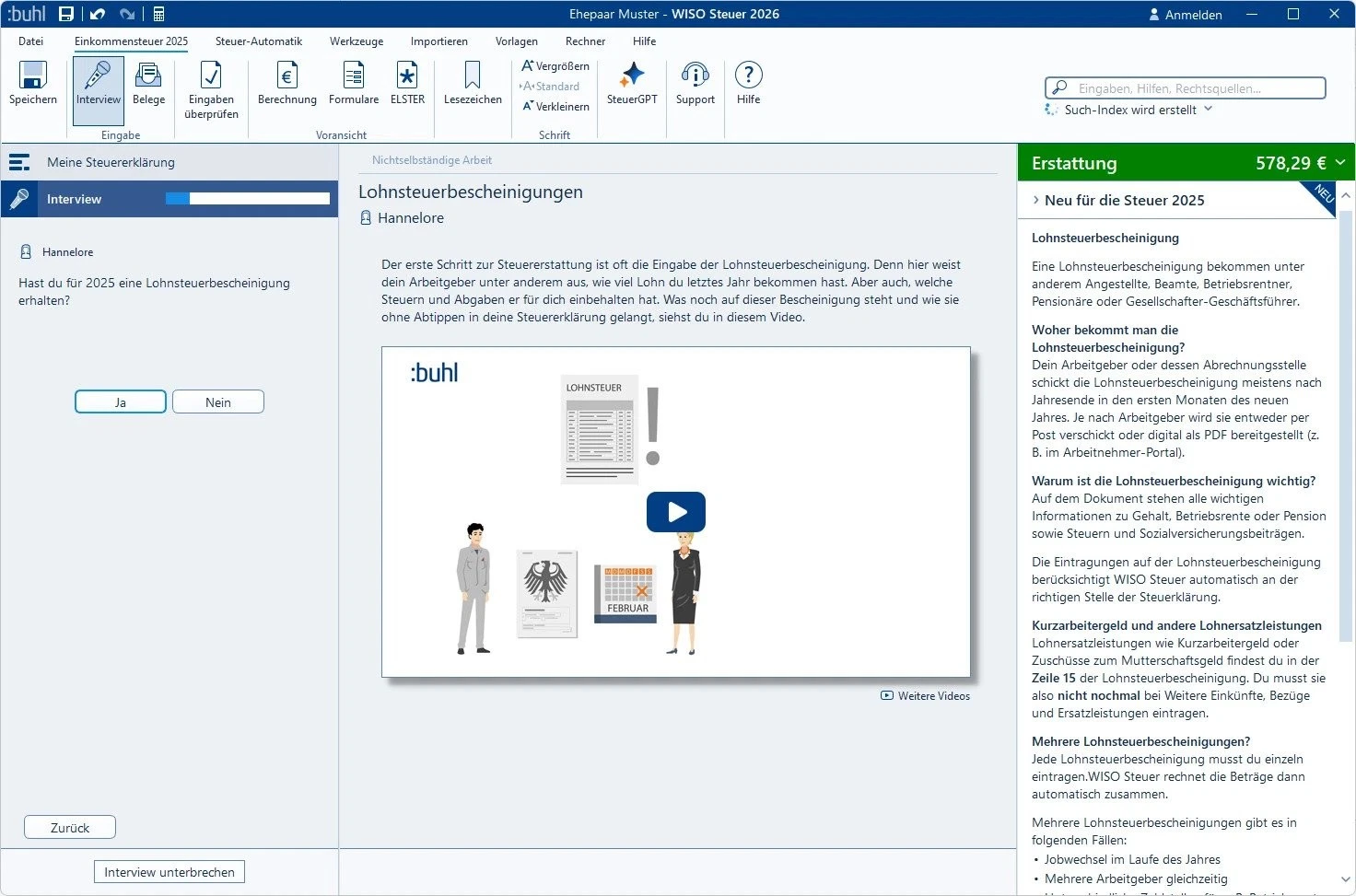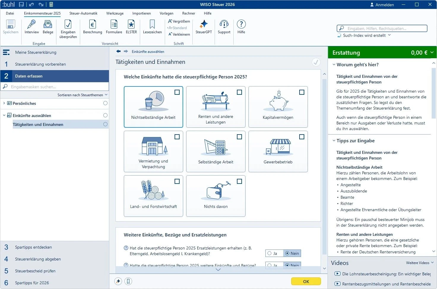 - Steuer-Assistent – Geführte Eingabe durch einfache Fragen