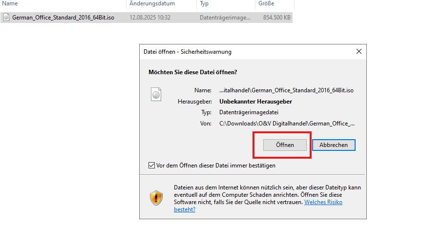 4. Klicken Sie im sich öffnenden Fenster nun auf „Öffnen“