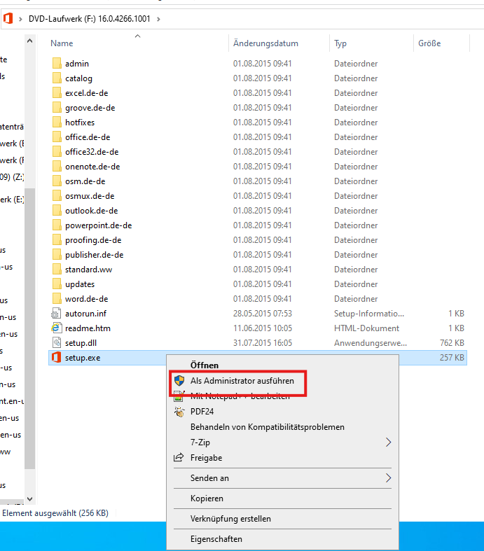 5. Führen Sie setup.exe Datei als Administrator aus, indem Sie mit der rechten Maustaste auf die .exe-Datei klicken und mit der linken Maustaste auf „Als Administrator ausführen“ klicken. Hinweis: Sollte diese Option nicht angezeigt werden, wählen Sie die Datei zunächst mit einem einzelnen Linksklick aus und machen anschließend einen Rechtsklick darauf