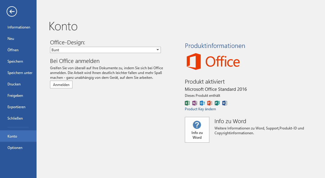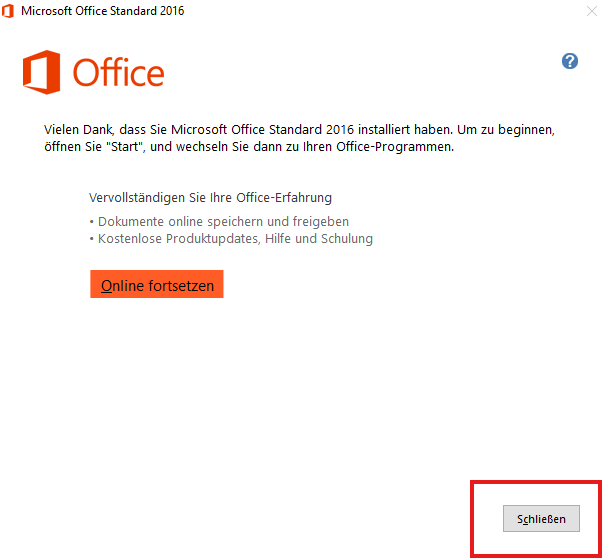 Fertig! Sie können nun mit der Nutzung von Office 2016 Standard beginnen.